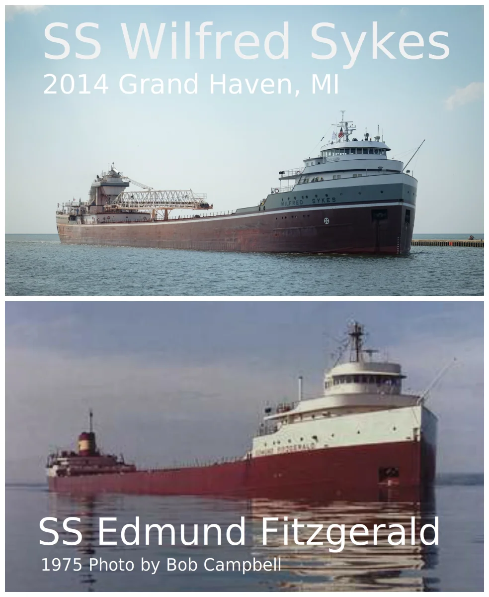 This is a photo of a similar vessel, the SS Wilfred Sykes that I took entering the Grand River in Michigan in 2014.  The Sykes loaded opposite the Fitz on November 9th, 1975 and left 2 hours later. Captain Dudley J. Paquette anticipated the storm's path and avoided the worst of it.  The Edmund Fitzgerald wasn't so fortunate.