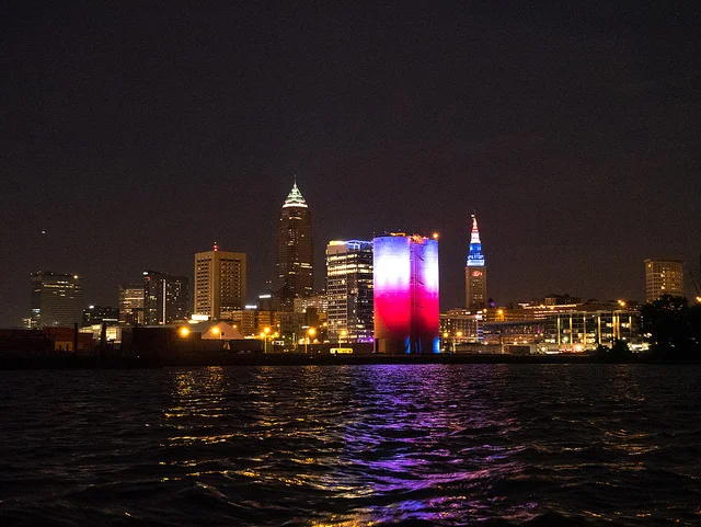 My plan was to set off from my kayak from Wendy Park and head over to the North Coast Harbor and capture all the views in between.  This should give me a unique perspective that I haven't seen before.  I was thrown a curve ball from the start...it was very difficult getting into the city due to all the road closures, which I expected, but I did not anticipate highway 2 also being closed.  I eventually made it to Whisky Island via Tremont and Ohio City just after sunset.  I was hoping to be on the water before dark to get some dusk shots, but oh well, my primary purpose is the after dark stuff.  Things went pretty good at first, the water was calm and the paddling was easy.  I was able to capture a few pictures, but realized quickly that I had mistakenly packed the wrong lens!  I had meant to bring the Olympus 12-40 f2.8 and Panasonic 25 f1.7, well, I had the 12-40, but accidentally threw the slow Pany 12-60,  so getting a sharp photo at night, while floating in a kayak was going to be very difficult!