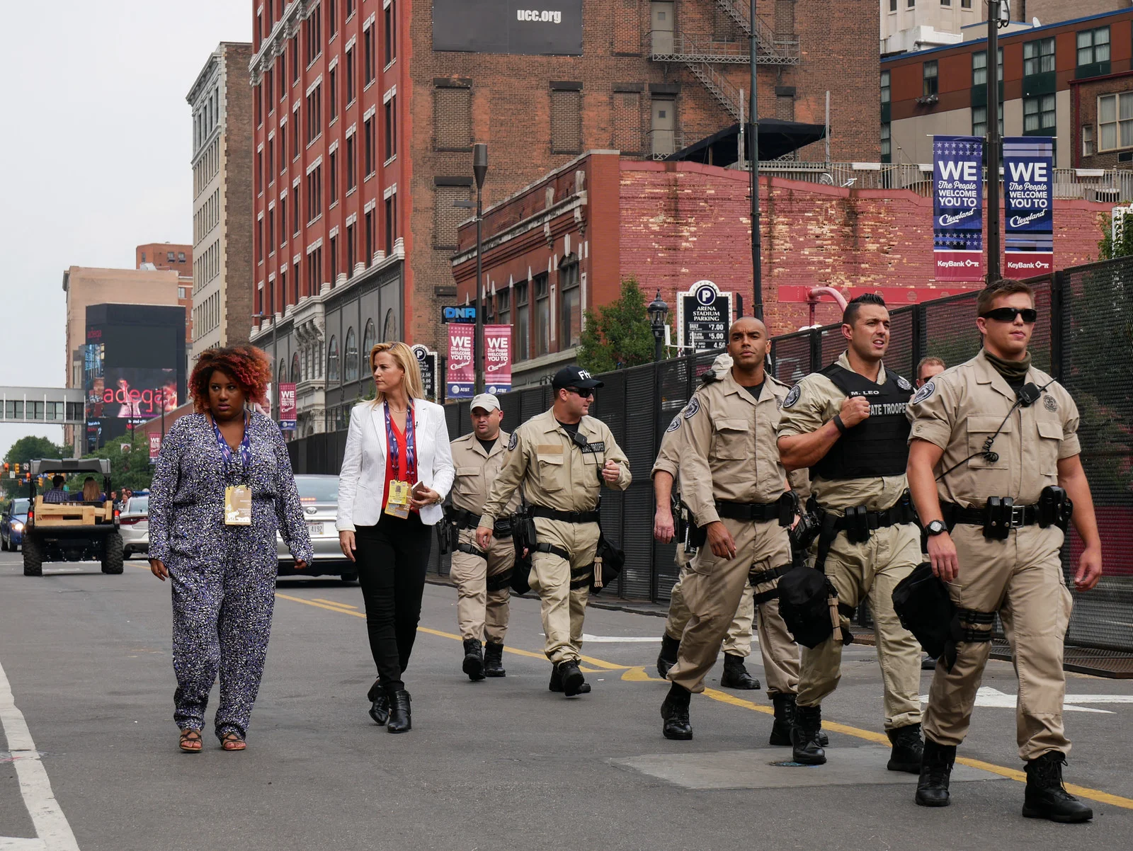 This is the area right outside the gate were many of the delegates come in and out of and it’s also an area saturated with law enforcement.  I saw state troopers from at least 6 or 7 different states, Cleveland and Akron Bike Patrol, mounted police,  and Secret Service.  There presence was all over, but never forceful, unless there was a reason, and very friendly in my interactions. At one point, I found myself surrounded by Cleveland Bike Patrol as they were posing for some post card worthy photos, themselves.