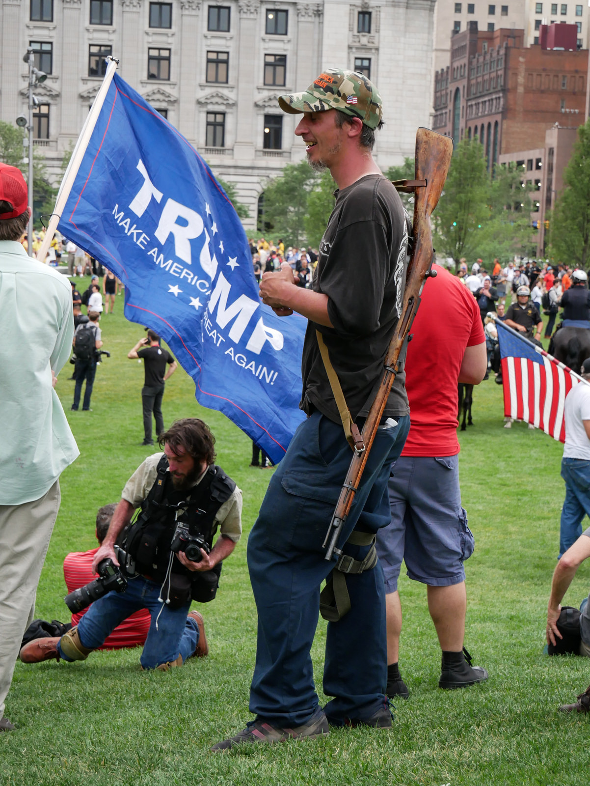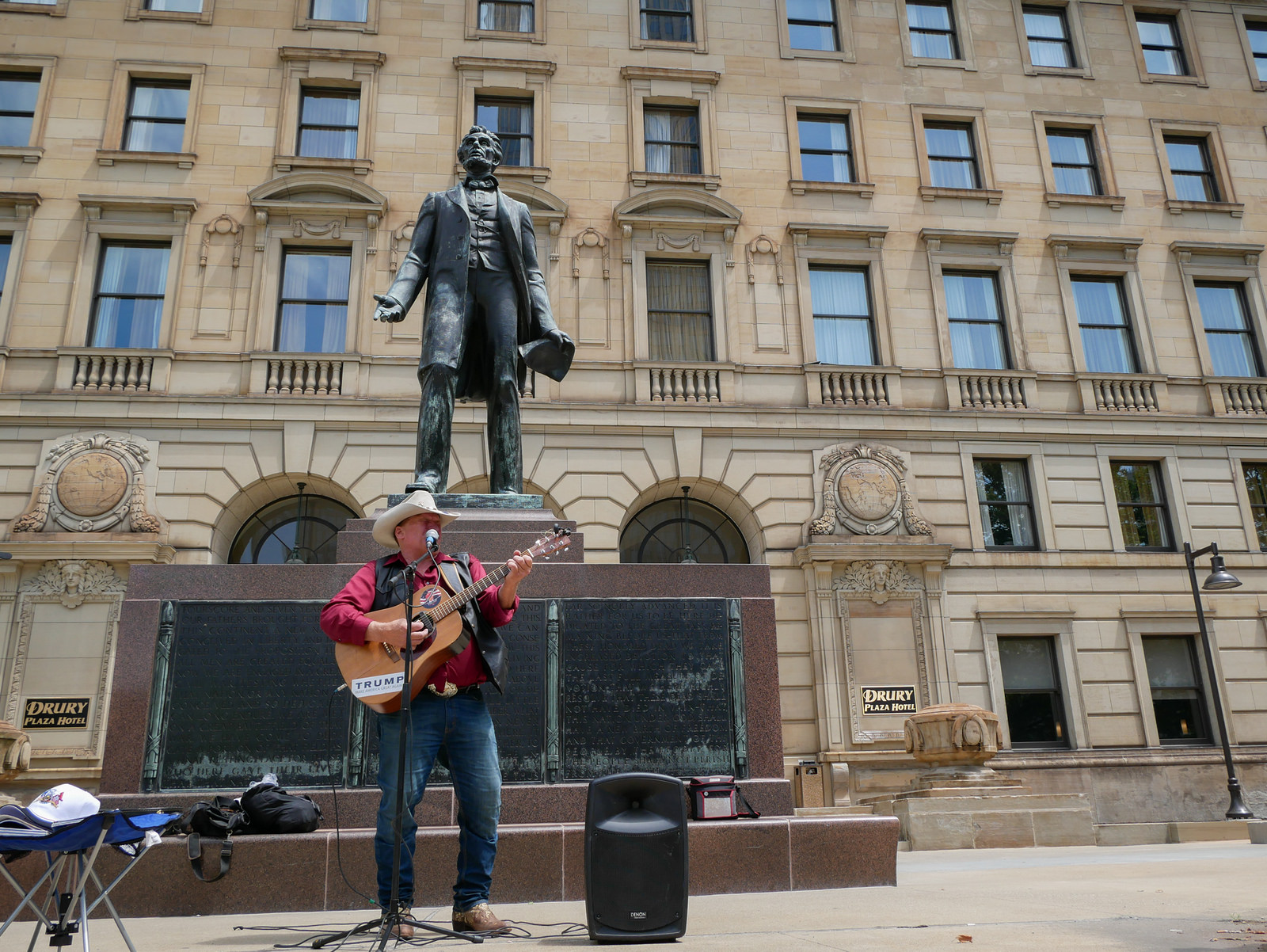 The next morning I headed back to the city for a full day.  To make travel easy, I parked down in the Flats East Bank and used my bike to get around.  I immediately found a rally of bikers and other Trump supporters at Settlers Park.  These folks spoke a lot about guns, religion and their disdain for Clinton and for some reason, John McCain.  There were plenty of colorful characters and a picturesque backdrop of the Cuyahoga to photograph at this location.