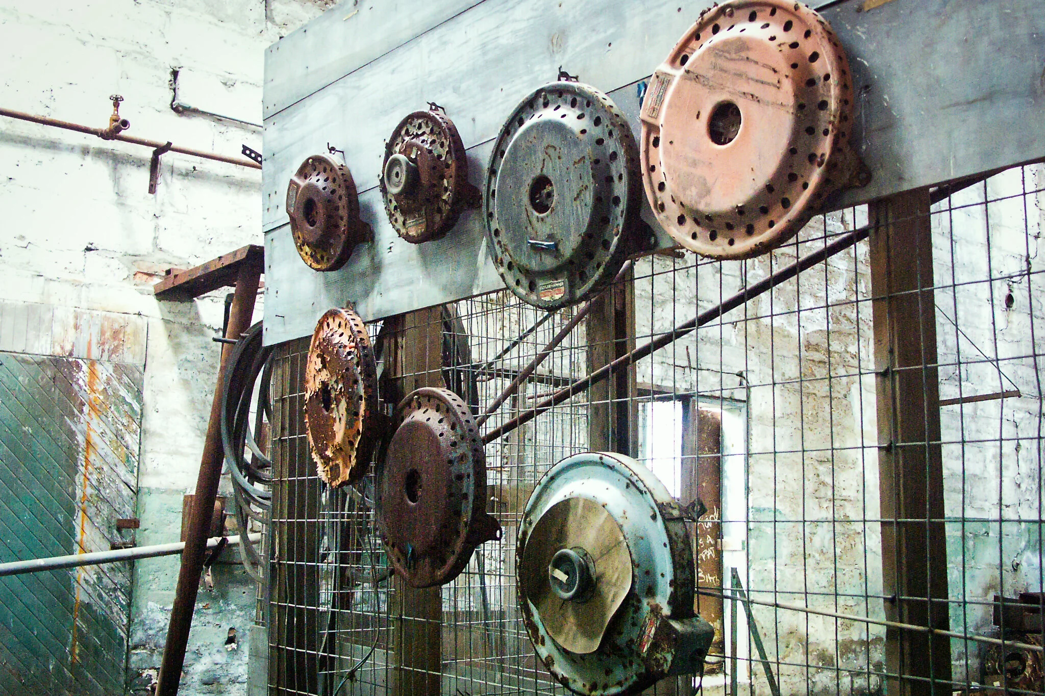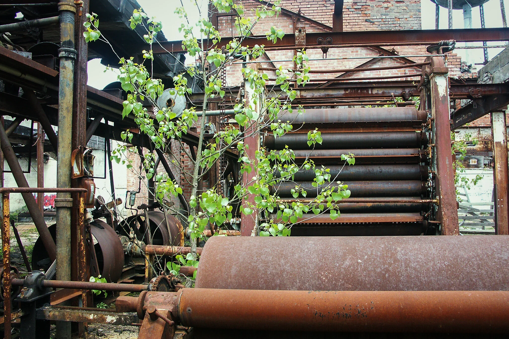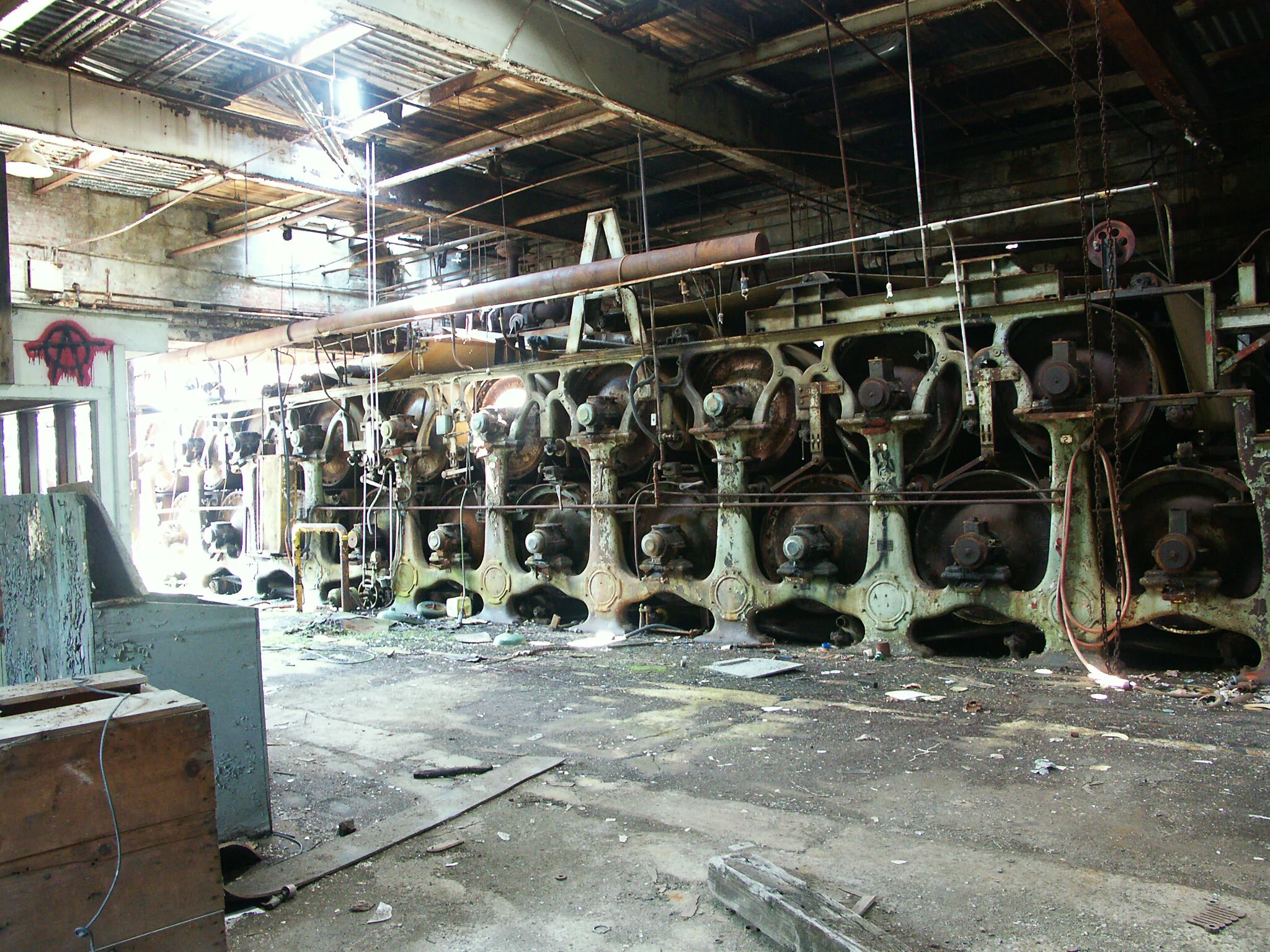 Construction of the Jaite Paper Mill began in 1905. At Jaite, they made flour and cement bags early on and later, fertilizer and bread sacks. The Jaite Mill was very successful at first and found easy access to transportation as it was built next to the Ohio & Erie Canal and the railroad. The mill was sold in 1951 and changed hands many times after that until the National Park Service bought the factory in 1985 after it finally closed. Much of the historic factory was destroyed in a 1992 arson fire and the park service started demolition in 2006. I took these photos in 2000 and 2004.