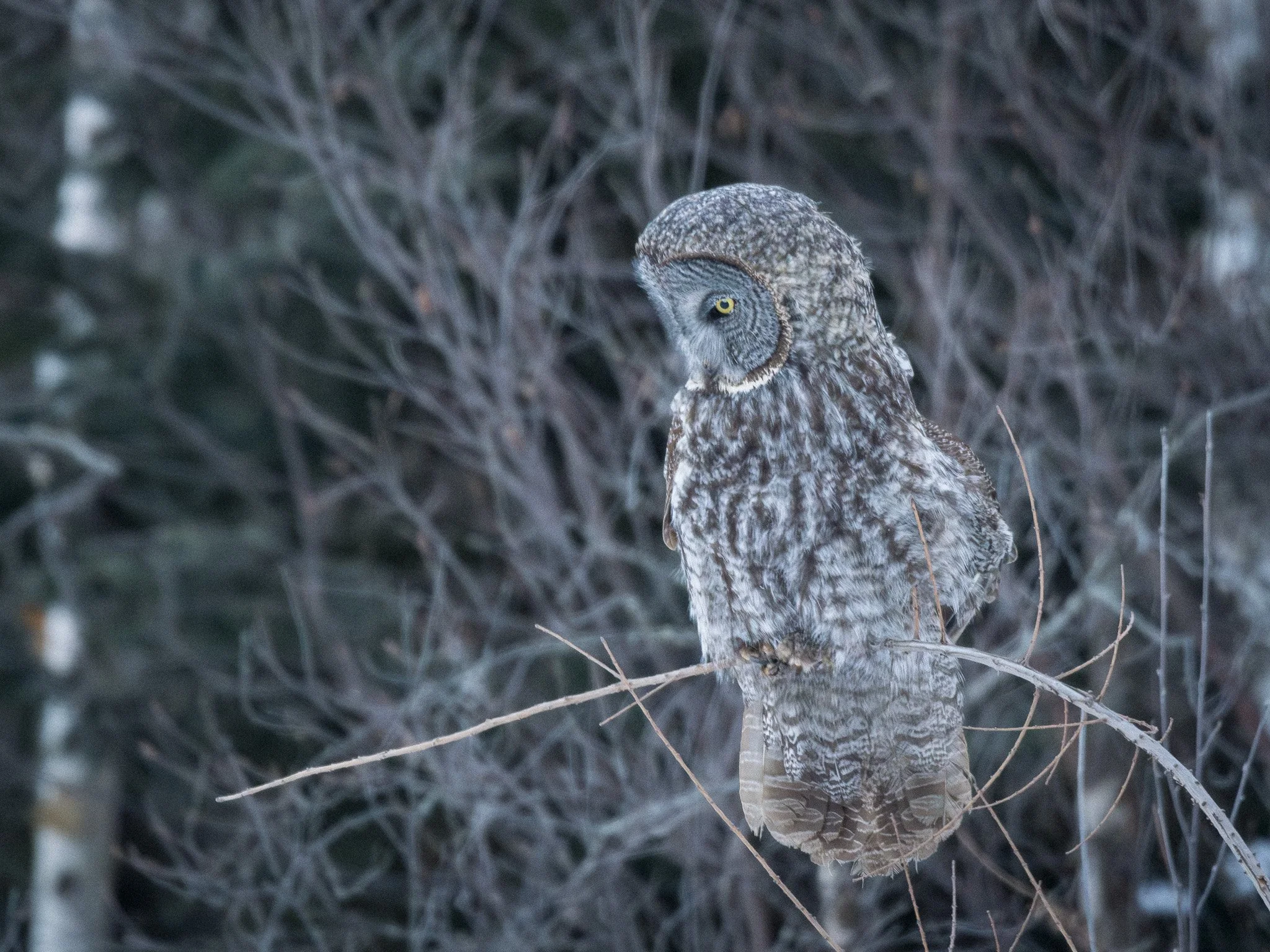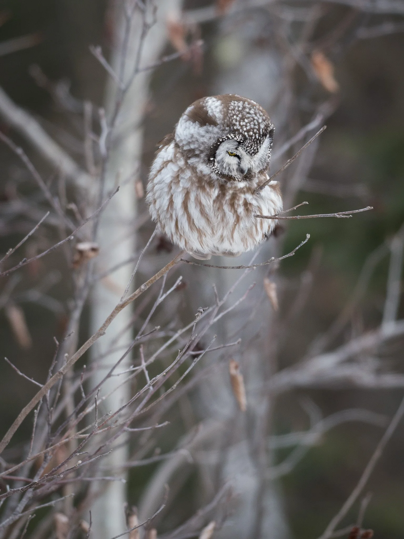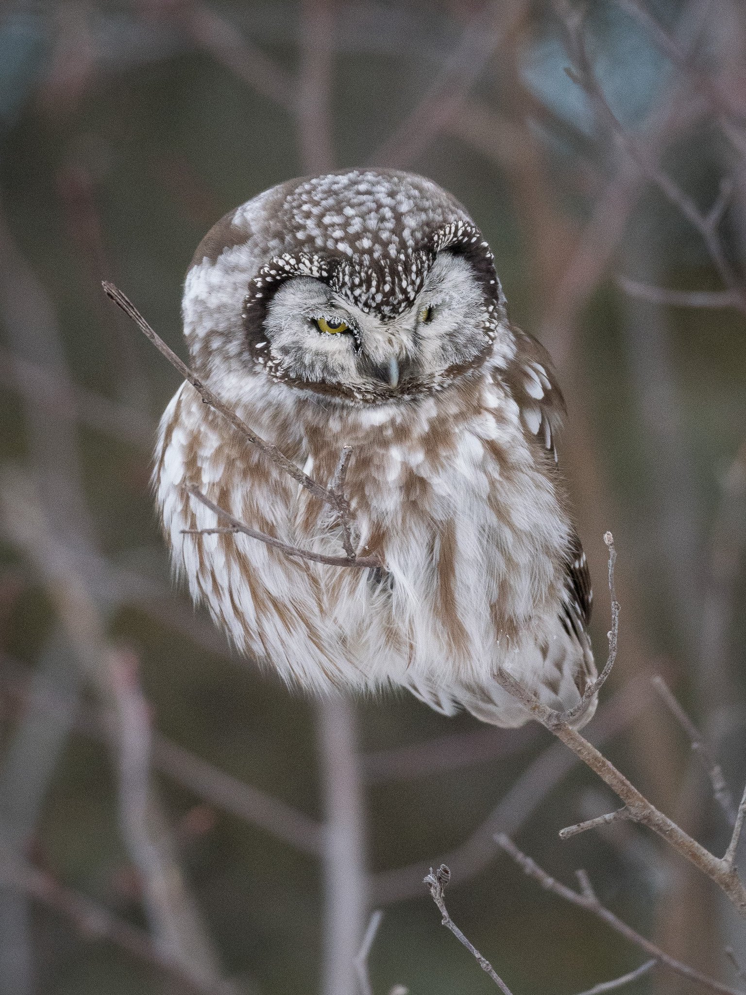 This was a particularly good year to look for owls because it is an irruption year for boreal species, like the Great Grey and the little Boreal Owl. This means that for various reasons, like food and climate, many more of these owls have migrated to the southern range of the boreal forest for the winter. I had hoped to see and photograph a Great Grey Owl when I started to plan this trip in early December, but it was luck that this turned out to be such a rare time to also see the cute boreal owls!