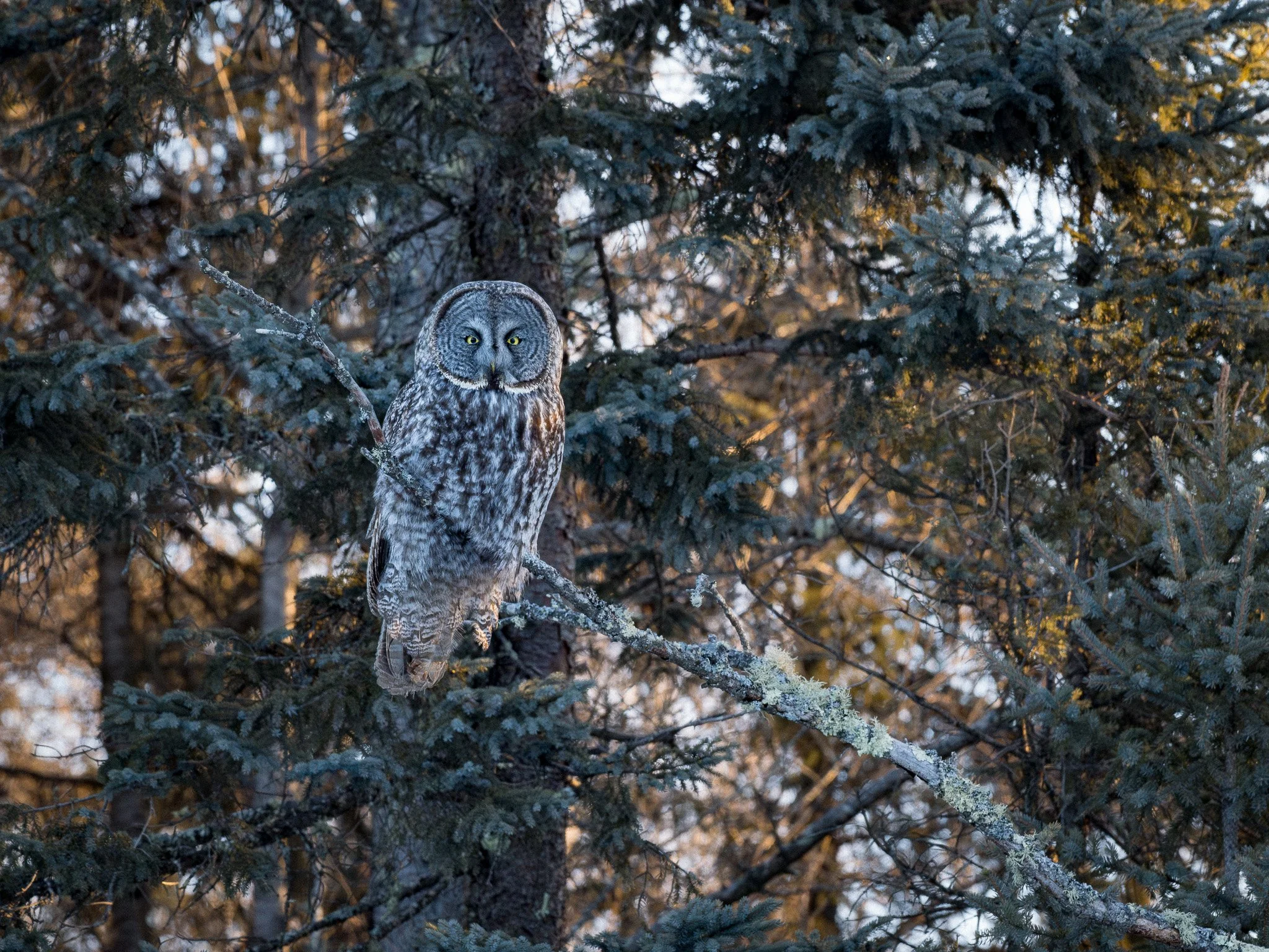 Like a lot of people, I love owls, but finding and photographing them can be quite challenging! Seeing a Grey Grey Owl in nature is something I’ve wanted to do for more than 20 years, but there is just no chance of that happening where I live in NE Ohio. I’ve known for a while that my best chance of seeing one of these mysterious and elusive owls was in northern Minnesota…and more specifically, the Sax-Zim Bog area. This is an area about an hour northwest of Duluth and about 14.5 hours drive from me. In January 2025 I finally made the trip! I could have saved some time and flown, but I prefer to drive because it just seems more adventurous and you never know what you could find along the way. The logistics seem easier and less chances of things going wrong, like canceled flights and messed up rental cars.