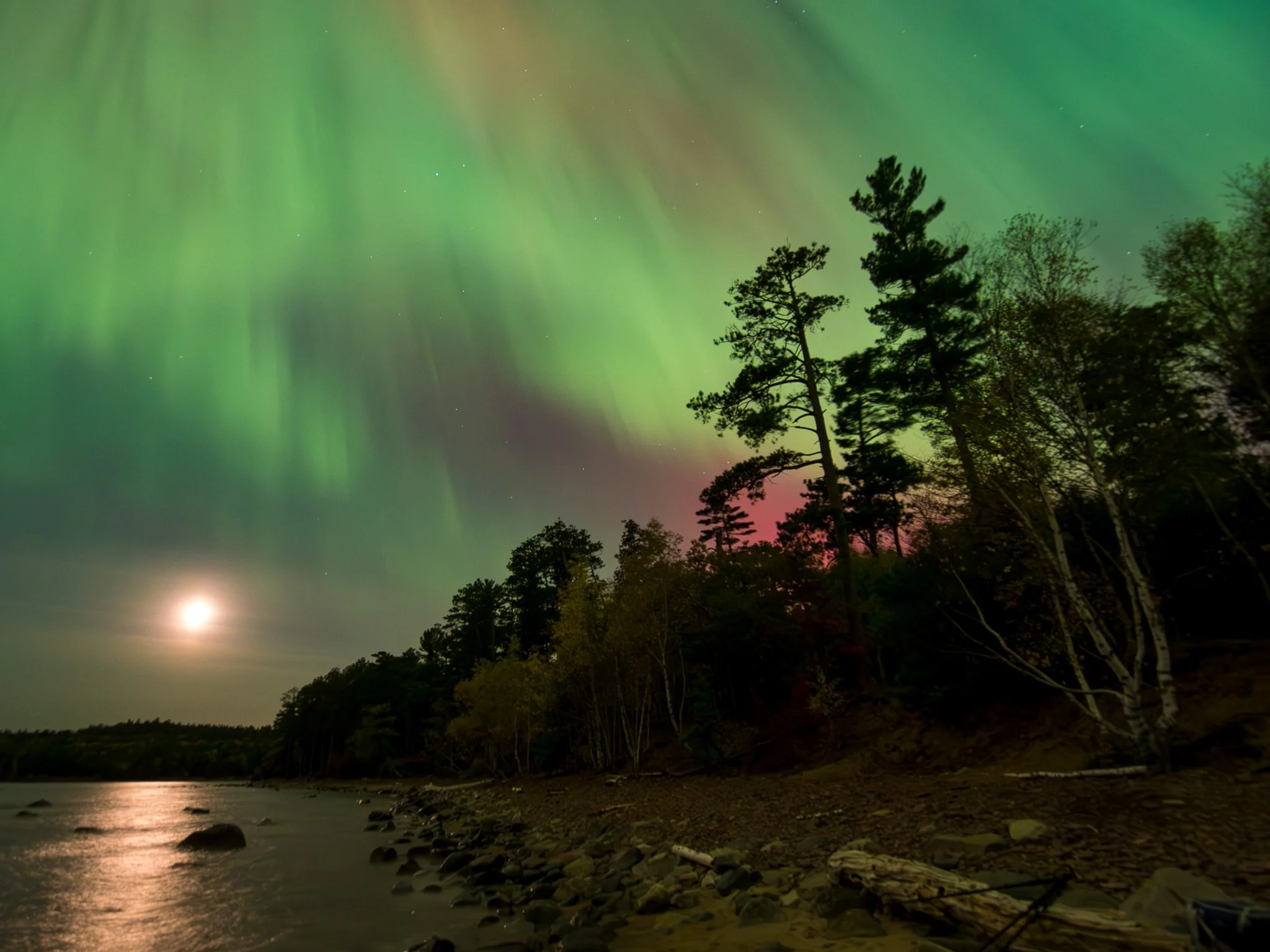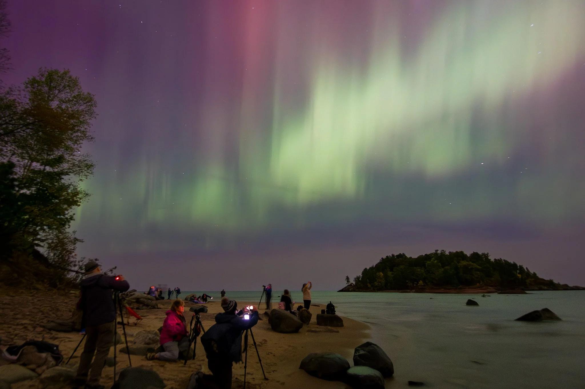 Over the last couple of days, we had been getting alerts that tonight (Oct. 10) had the potential for some great Northern Lights displays. Well…the predictions were correct! We went out to a beach with a view of Little Presque Isle after dark and could almost immediately make out pink hues in the northern sky. Over the next hour, we captured multi-colored lights over Lake Superior. We couldn’t believe how fortunate we were and started packing up our gear to leave once the light show faded…and then BOOM!, the whole sky started to explode all around us to let us know the main event was just now starting! We stayed out for more than another hour and captured even more brilliant colors that were popping within a 360° view. It was truly one of the most incredible experiences of my life and I was thrilled to share it with my new friends!