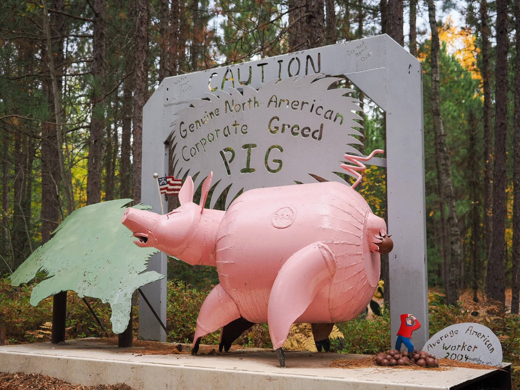 After a long night, we decided to take a more leisurely drive to our next destination over to Munising. We made a couple of stops along the way, our first being the eclectic Lakenenland sculpture park. This park is one man’s vision with over 100 sculptures ranging from the political to whimsical…a true roadside treasure!