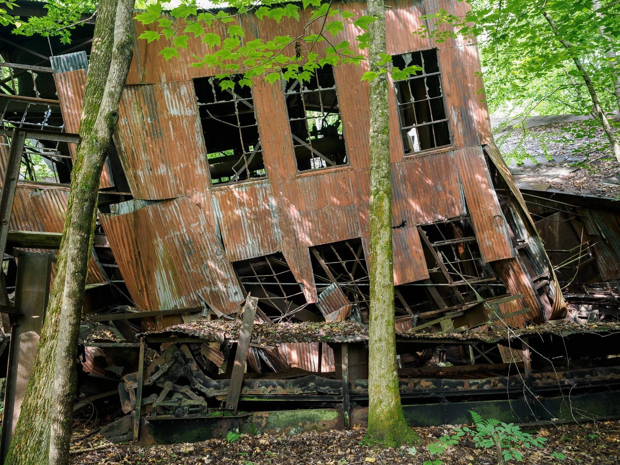 Finally, at the bottom are ruins of the tipple (preparation plant), powerhouse, and deteriorating machinery.