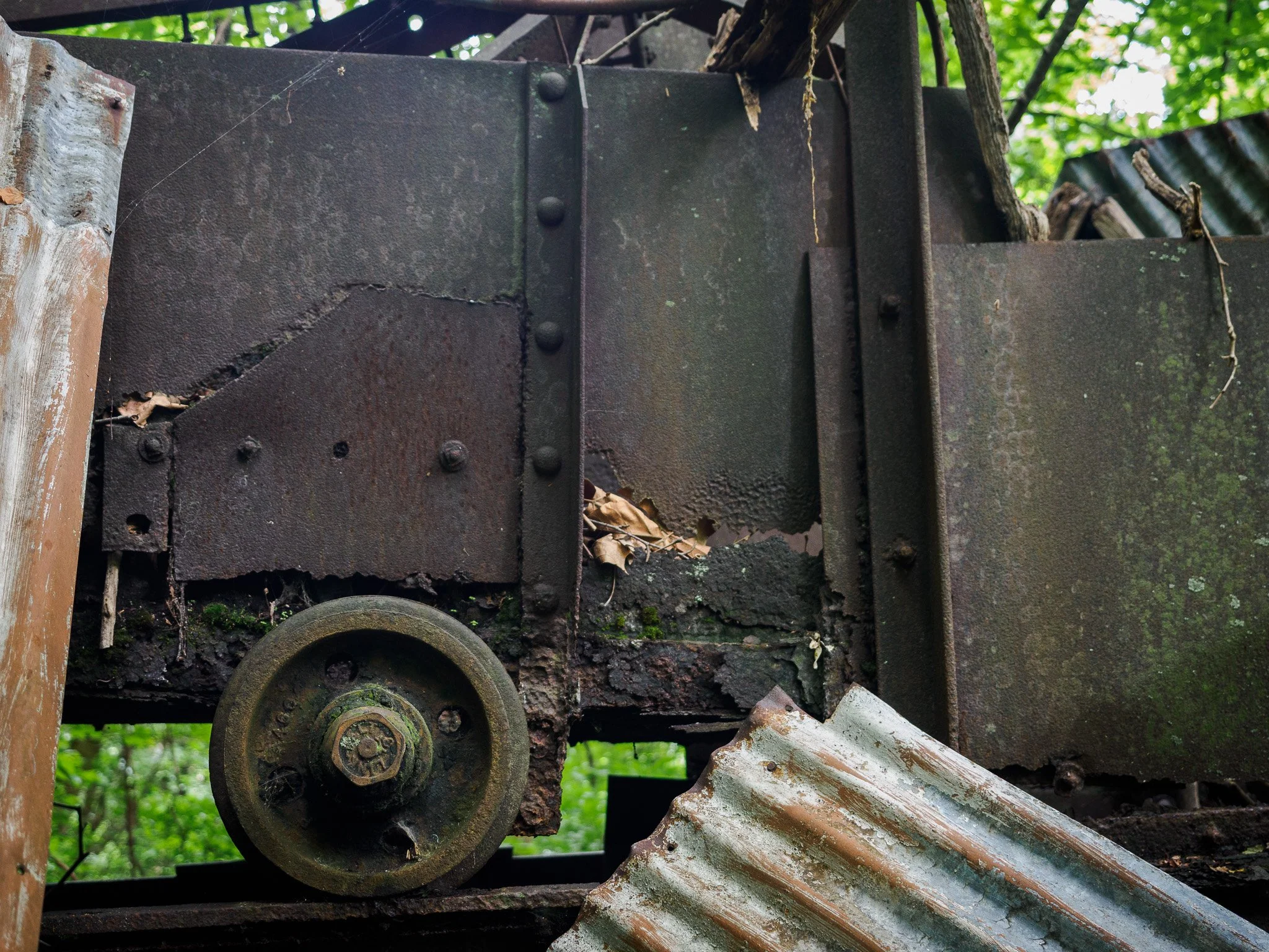 I hiked down to the abandoned coal mining site of Kaymoor One in West Virginia to explore and document what remains of one of the highest producing mines in the New River Gorge. Kaymoor opened in 1900 and started to decline after World War II, eventually closing in 1962. Many of the camp structures were destroyed in a fire in 1960, and although there is still a lot of machinery, much of it is deteriorated and hidden by overgrown foliage.